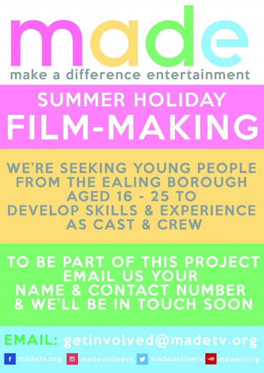 Make A Difference Entertainment (MADE) is a charity dedicated to forming meaningful collaborations and develop creative solutions to engage young people and those around them to unlock their potential. We exist to unite diverse and distinct communities through the power of film-making for positive social change. In the last year we've supported over 150 young people from West London to have a voice and make it heard through our employability and community cohesion focused programmes.