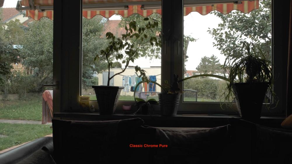 Well, I did such a test already. I was doing such a DR test plus I wanted to stress test the tracker of resolve so I switched off the OIS. I cut out the windows and pushed the shadows of the room. Here are 2 shots of the test and the links to SOOC footage of this test. Classic Chrome footage: https://www.dropbox.com/s/2olmvdgjtjpr9gh/ClassicChromeDR.MOV?dl=0 Pro Neg Std. footage: https://www.dropbox.com/s/clll4ofg8yjf6jf/ProNegStdDR.MOV?dl=0 Sorry, I just have a hard time to grab a still without color correction. So, the jpeg of the Classic Chrome footage is color corrected, too. It is almost SOOC (no cut out) and you can't push it much, because there is no information in the shadow. It's just shadow. ;-)