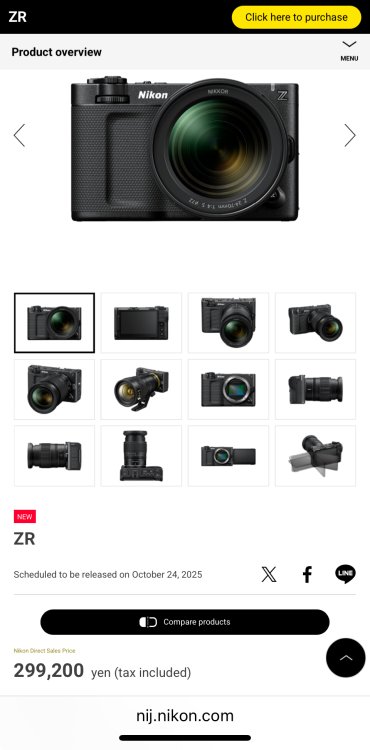 Nikon’s Japan site showing official release date there of 24th of October. That tax inclusive price of ¥299,200 is taking the value for money to another level really isn’t it 😂