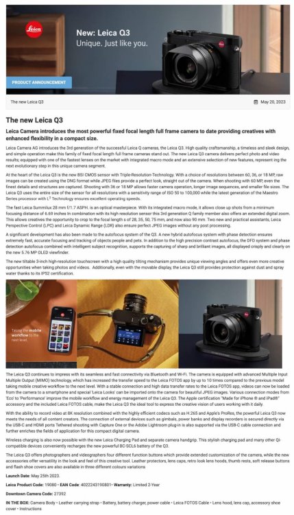 This is apparently from an over enthusiastic Leica dealer who pushed the publish button a bit hastily ahead of the official launch on the 25th of May. \ Cached version of the since deleted page is here https://webcache.googleusercontent.com/search?q=cache:WVl0azXh3-gJ:https://downtowncamera.com/blog/the-new-leica-q3&cd=10&hl=en&ct=clnk&gl=us