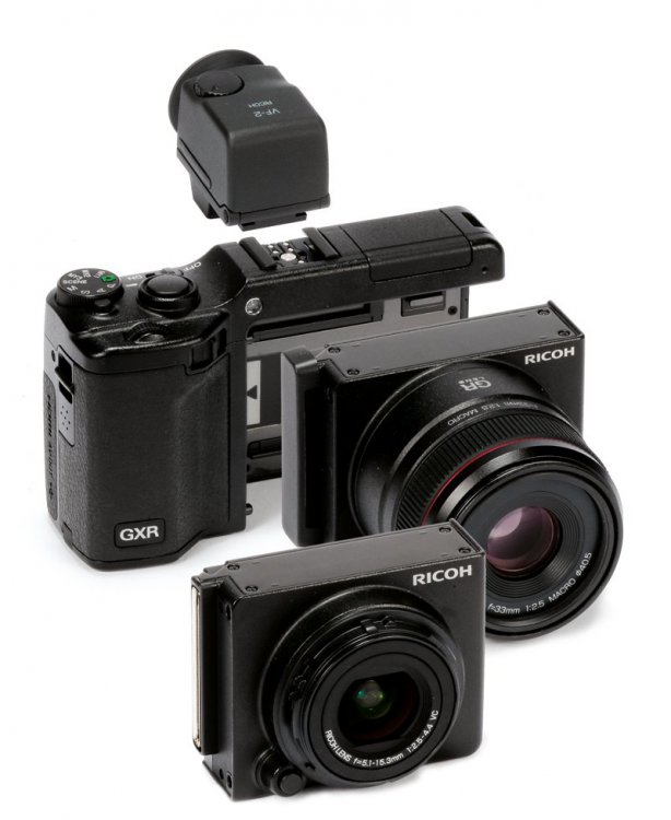 Ricoh did a modular system called the GXR over a decade ago where you could swap out lenses with integrated sensors or have a fixed sensor with interchangeable lenses and of course a shoe mounted EVF. The mad bastards.