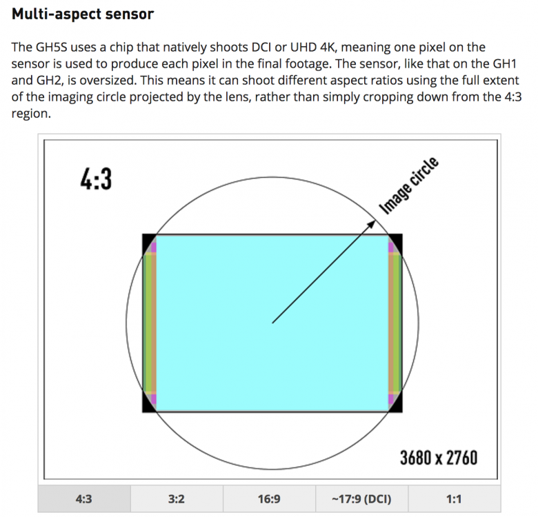 "So I simply dont get 'the sensor is actually larger than the entire imaging circle of a m43 lens' because they are exactly the same sized sensor with exactly the same sized image circle." The effective imaging area is larger than most other m43 chips, thus making the FOV wider on the GH5s. It's minimal but IBIS on this sensor could cause vignetting on native Panny lenses; something they would not want to happen (my opinion). From DPReview: "Well I dont have any evidence apart from the fact the fact that I dont understand why the same size sensor with the same bit rate as the GH5 would have any reason to over heat." Even if those two factors remain constant, there are other variables. The cameras have two completely different sensors with vastly different circuitry. The sensor readout speed is faster and AF is improved (minimally) on the GH5s. Also, anecdotally my GH5 always has run hotter than my GH4. A symptom of IBIS? Maybe. My point is that numerous Panasonic reps have stated their reasonings for omitting IBIS from the camera. I don't understand how so many people think they know better. -