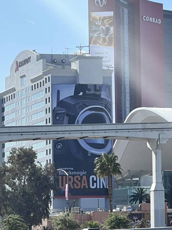 Well, they've definetely got a new camera coming. The 'Ursa Cine'. I'd imagine they will also announce other new hardware, the next Resolve, and software for the pocket cameras. Ursa Cine seems to have PL mount and some kind of wireless features judging from the antenna. I wouldn't be surprised if it was built with camera to cloud and all that stuff in mind. Also USB-C on the front? I doubt that's for an SSD, so maybe powered focus motor or something? .