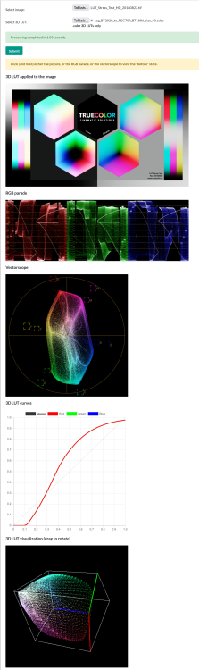 If you are interested, I have a free 3D LUT Analyzer tool on my website. Here is how it looks with the N-Log_BT2020_to_REC709_BT1886_size_33.cube applied to a LUT Stress Test image: When you click and hold either the picture, or the RGB parade, or the vectorscope, you can view the "before" state. You can also drag and rotate the 3D Visualization.