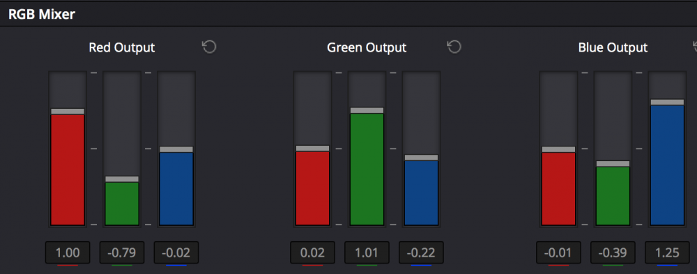 21. @BjornT was kind enough to share a grade he did using Filmconvert and Lumetri. Here's his final grade: and my manual grade: These are the adjustments: First node is WB Second Node is this Luma Curve: Third node is Hue vs Hue: Fourth is a YUV channel mixer with a key to only apply it to blue: This is the main 'look' of the grade, and remember that although the snip above says RGB, that the node is in YUV colour space. If you're looking for cool looks then a channel mixer in YUV mode is where it's at! Fifth node bumps up the Luminance and Saturation of the yellows (in the trees) via Hue vs Sat and Hue vs Lum curves. Sixth is a key on the skin colours that shifts the yellows slightly towards pink (with a Hue vs Hue curve) and also raises the brightness a little (with a Hue vs Lum curve). This was an interesting exercise and I primarily did it by having the two shots on top of each other with a Difference blending mode, and looking at the resulting image with the Waveform view, and also having the two shots next to each other on the timeline. I'd go back and forth between the two shots and look at what the main issue was, then go into the Difference mode view and play with the controls trying to make the waveform go as low as possible (low waveform = smaller difference between the images). I tried a number of things in curves where you'd end up with a curve that would look like a rollercoaster and that would tell you that something was going on with what you were adjusting, but that this type of curve wasn't the answer, so I went down a few of those rabbit-holes and trashed the node and tried something differently. Anyway, that might be useful for someone.