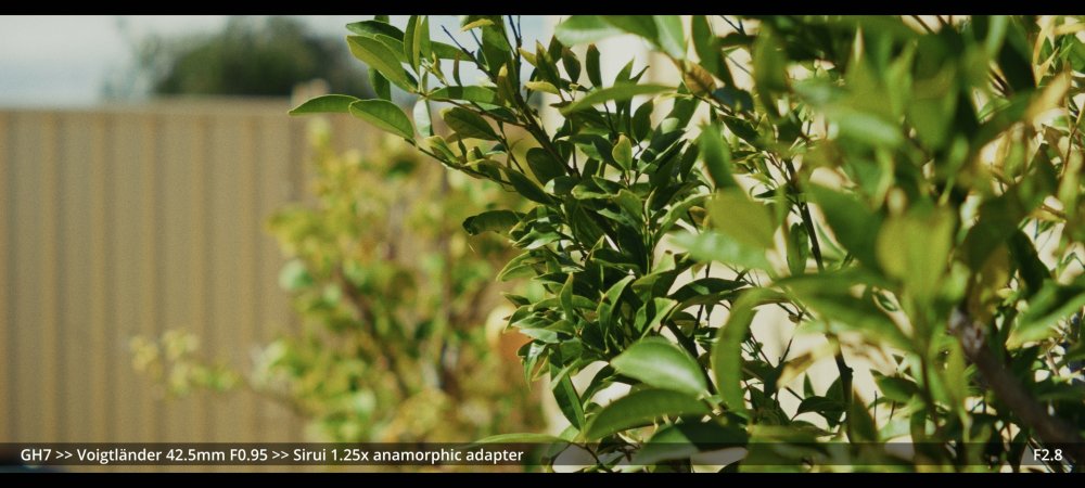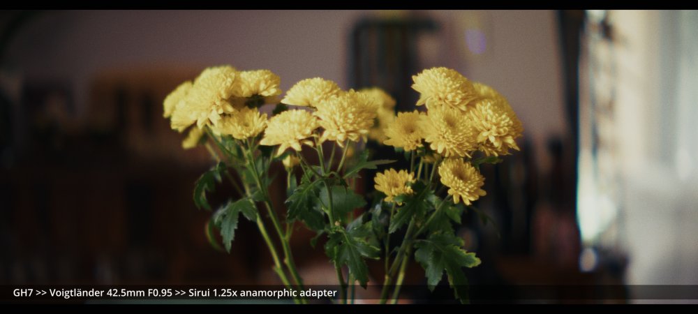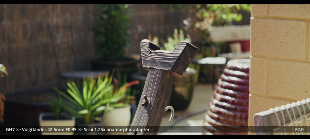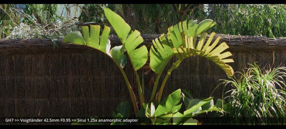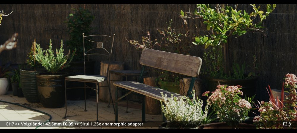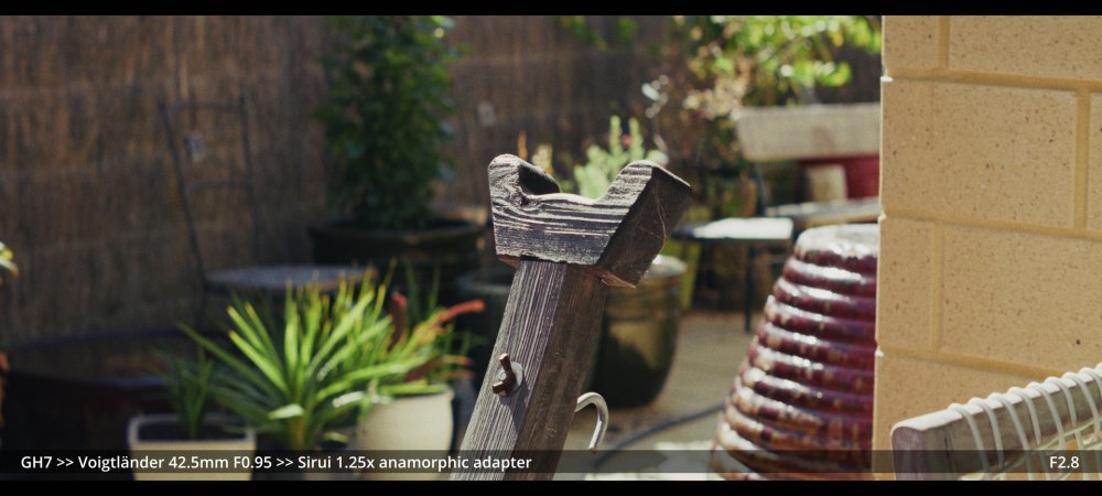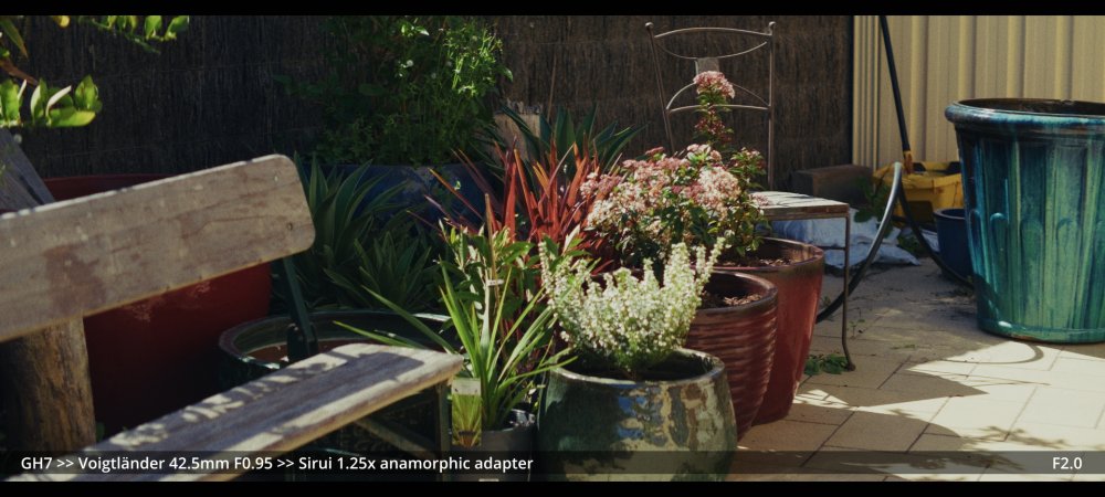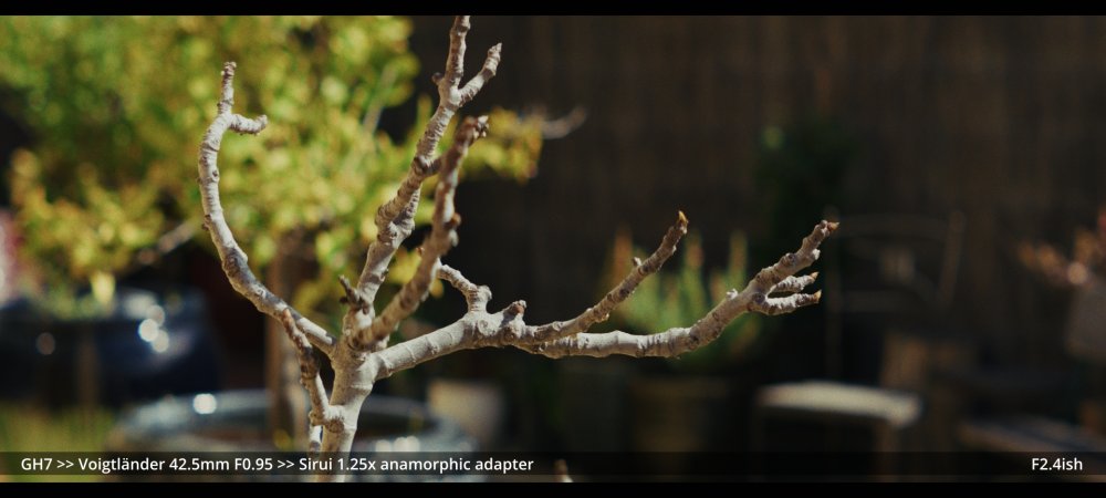 Today I tested the Voigtlander 42.5mm and Helios 58mm F2.0 lenses with the Sirui 1.25x adapter. GH7 >> Voigtlander 42.5mm >> Sirui 1.25x adapter.. Wide open at F0.95: ...and more stopped down (I didn't have enough vND for this much light): GH7 >> M42-M43 Speedbooster >> Helios 58mm F2.0 >> Sirui 1.25x adapter There's a certain look to the Helios, but it's hard to separate it from the changing lighting conditions, and I wonder how much of the differences could be simulated in post too.. reducing contrast by applying halation / bloom, softening the edges, etc. In pure mechanical terms the Voigts go much better with the Sirui, and the extra speed is really handy, so that will probably be my preference over the Helios.