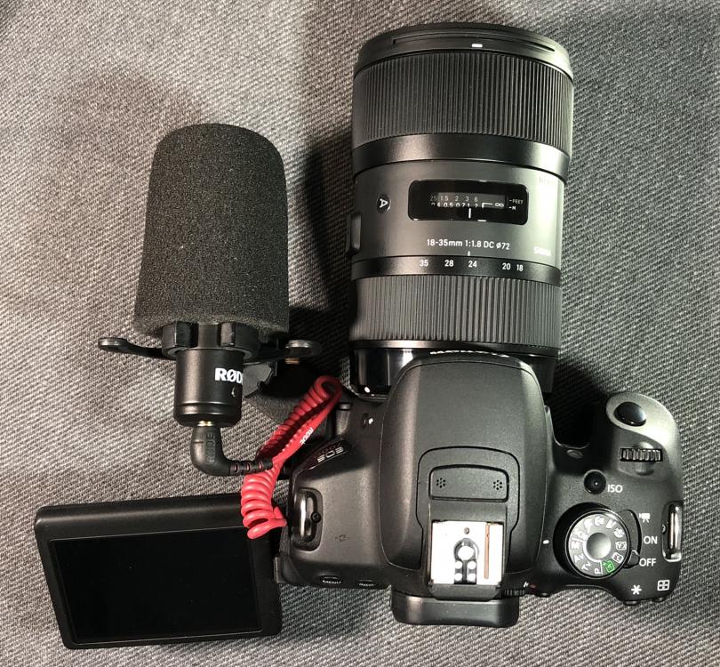 Here's the mic with the foam cover on top of the 700D and Sigma 18-35: With the flash bracket underneath allowing the mic to be mounted on the side: Underneath of the same setup - notice that the flash bracket is one of the smaller ones (15cm long) and it's in its shortest configuration: If you put the whole thing on your palm then you can operate the focus (and maybe the zoom) with your left hand and hold the grip in your right: or, if you extend it, then you can get to the zoom by going in-between the mic and the camera: I've used larger brackets in the past to have multiple cameras when I wanted more than one focal length to enable jump-cuts. This is the only pic I could find, but I'm pretty sure that I actually used it with the mic in the middle like above. The more angle you put on the bracket the nicer it is to hold, but the more likely the mic or other camera will get in shot if you're using a wider lens. On a sound-quality-related note, I have played around with many audio setups too, and found a few interesting things. In terms of quality: The primary thing is self-noise (hiss) which you want to be low, the secondary thing is isolation where you pick up less background sounds, and the third is having a safety-track if something peaks, then last is 'sound quality' When YouTubers (and I assume non-audio people) talk about sound quality they are talking about hiss and then about EQ Talking about EQ is silly because you can adjust it in post in every video editing software known to man - at one point I was wondering about buying an expensive stereo mic for ambience, but I did some tests with the built-in mics on my cameras and they sounded just fine (with some EQ in post!) so I saved myself some money and carrying around a separate microphone, and now when I want some ambience I just unplug my shotgun mic and hit record and use the in-built mics I've got the Beachtek unit mentioned and battery life was just awful - 5 hours with freshly-charged rechargeables. Forget the price of alkalines - it's approaching $1 per hour of use. I ended up buying the Rode VMP+ which has 19 hours of battery life and means I don't need a mic pre-amp at all, plus it charges via USB. If you sleep more than 5 hours a night you can literally just turn it on when you wake up and off when you put it back on charge at night! That makes it much less likely to stuff up a shot by forgetting to turn the mic on. All of the above relates to on-camera shot-gun style sound setups, and for my home videos. I haven't messed with lavs or boom mics, so I'll leave that to Ironfilm in the other thread