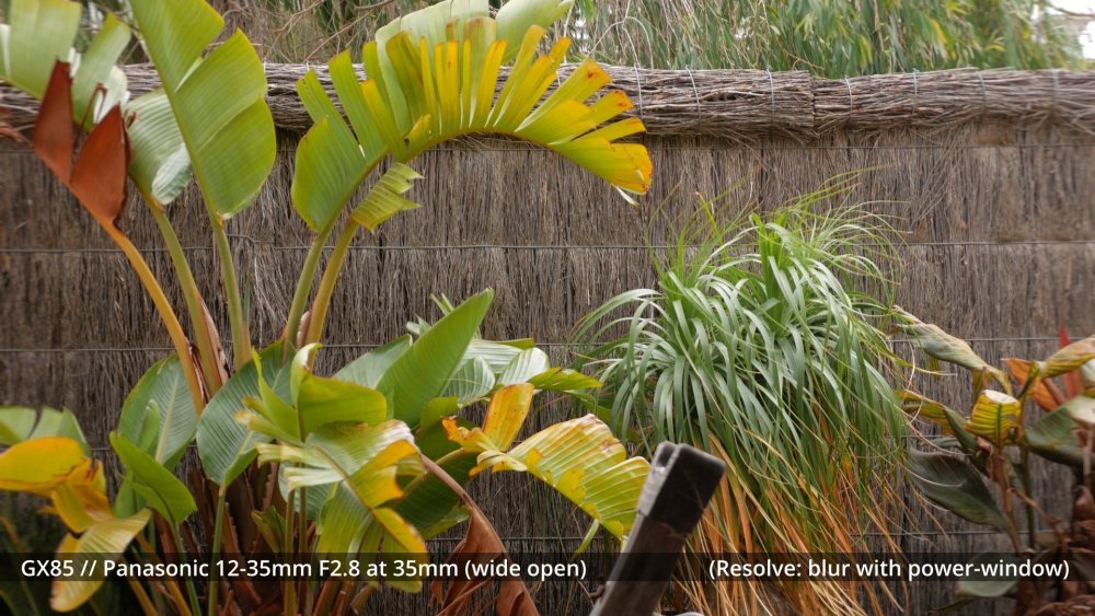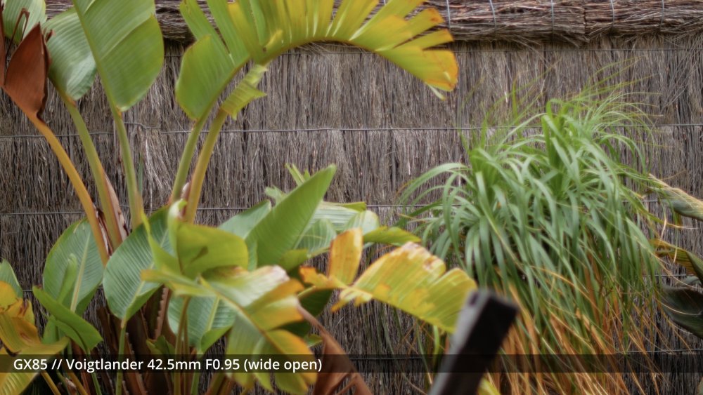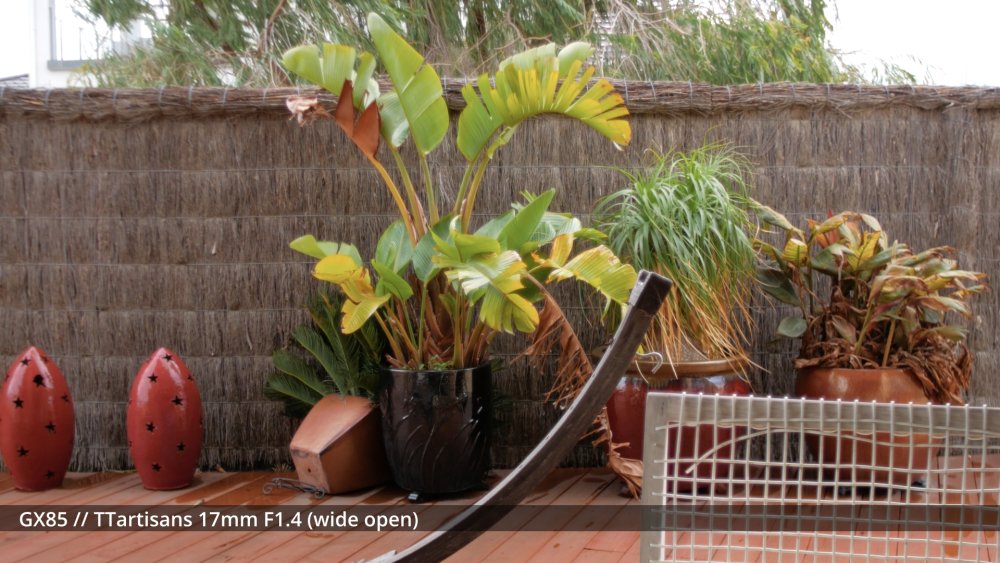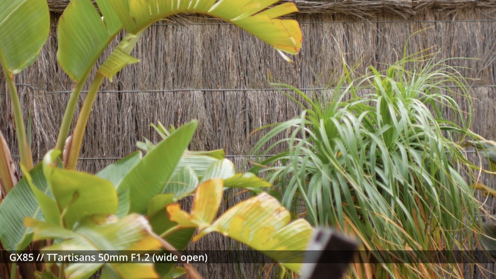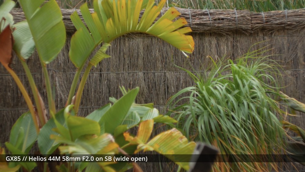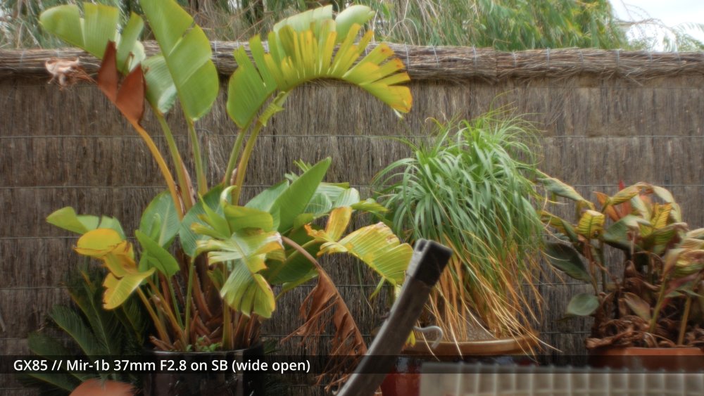 I've sort of been waiting for my adapters to arrive to shoot the next round of tests, but I figured that sharing some early impressions might be useful and help me organise my thoughts a bit too. I shot my first round of the test quite poorly, so images have different exposures etc, which is why I wasn't sharing them before, but there are some interesting things to note from some of the different lenses. The 14mm F2.5 is sharp from edge to edge and has relatively deep DoF, so this is a reference. The Takumar 35mm F3.5 is sharp in the middle and still relatively deep DoF but has significant "zoom" radial blur on the edges. ..as does the Cosmicar 12.5mm F1.9.. The TTartisans 17mm F1.4 has a lot of blooming when wide open (but is clean from F2 onwards) and the Yashica 28mm F2.8 has a lot of blooming when wide open too, although the blooming seems to be a lot larger (with the light from brighter areas being distributed a lot further away in the image than with the 17/1.4) The blur on the edges of the Yashica also seems to have a lot of colour separation too: unlike the TTartisans: or Cosmicar: The Mir-1b 37mm F2.8 is all over the place, reminding me that I have never liked it and never saw what others saw in it: The Helios is about as you'd expect - sharp in the middle but edges that are hype-worthy despite essentially being a one-trick pony: (Note that this is the Helios 44M, not the 44-2. I have the 44-2 and it's easily one of the worst lenses I own, with blooming far in excess of anything I included in this test. It sits in a drawer and stays there.) In contrast to the Helios, the Takumar 55mm F1.8 is much cleaner (bearing in mind this is a shallow DoF image and I'm standing at an angle compared to the fence so the edge softness is likely to be partly the shallow DoF) : The Voigt 42.5mm F0.95 is softer in the middle but has cleaner edges: and the TTartisans 50mm F1.2 doesn't have the blooming of the Voigt, but might not be sharper as bloom and sharpness are independent attributes: but the 12-35mm F2.8 makes all of these look positively vintage: Obviously the other lenses can be stopped down to potentially be as sharp as this is, but I shot all these wide open to learn more about aesthetics, not to perform a technical test, because that's what MTF charts are for. I'd like to say that I can draw some conclusions from this test but realistically it's too early. I do have some impressions though. I suspect I don't like the lenses that have too much bloom. I bought a Tiffen Black Promist 1/8 and shot with it on the 12-35mm and ended up not liking the images in post, and some of these lenses are a lot more bloom-y than the BPM. The purpose of using any lenses other than my AF set (9/1.7 and 14/2.5 and 12-35/2.8 and 14-140/3.5-5.6) is to get shallow DoF or DoF-related things (e.g. oval bokeh from anamorphics) which are essentially the only things you can't apply in post. I have thought before that I don't really like colour separation, like the red halation from film or CA, but the example shots from Attack on London and also from the wide angle adapter don't seem that objectionable, so maybe I'm changing my mind about this? One thing that came out of this test was how much I like the Tokina 28-70mm F3.5-4.5 zoom. It has a vintage flavour for sure, but doesn't seem to be too degraded. I am really looking forward to testing the wide angle adapter and 1.25x anamorphic adapter on this lens, as I suspect those adapters will be limited to around F2.8 anyway, so trading off the flexibility of a zoom for only one extra stop doesn't seem that worthwhile in that configuration. The only lens not yet mentioned is the 14-42mm F3.5-5.6 kit zoom, which in this situation isn't that different from the 12-35mm F2.8. The next test I'll shoot will have significant depth of field, so I can see things like bokeh shapes and rendering (e.g. swirly vs cats-eyes vs not), and I'll have to work out some way to expose all the images the same (or use the GH7 and correct in post) as exposure makes a difference perceptually. I just wish my adapters would get here sooner!