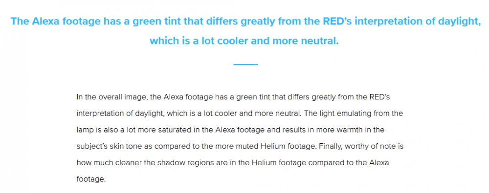 Hello! One of the videos I recently watched reminded me about a small conundrum I had some time ago: Top-level gear seems to make the image slightly more green (an earthy hue of green, not the Sony-zombie one). Is it only me or is it visible to you, as well? Maybe it's "THE 1 TIP THAT WILL MAKE YOUR VIDEOS CINEMATIC"? Who knows? 😎 Some screen grabs to support that thesis: (taken from: https://youtu.be/8x10V0oGTIM) Another example: Angenieux EZ-2 15 to 40mm on a Canon M50 (taken from: https://www.youtube.com/watch?v=fdrn1FjkLf8) Arri Alexa (Classic) vs iPhone 11 Pro (https://youtu.be/jWKkEvJ8HlY) Alexa Mini vs Red Epic-W Helium https://nofilmschool.com/2017/02/shootout-arri-alexa-mini-vs-red-epic-w-helium: Their conclusion: Am I seeing things?