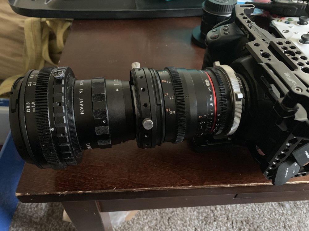 YAwesome Elmoscope ii anamorphic with added threads to accommodate the Rapido FVD on the front. Comes with rear clamp with 77mm threads. No scratches on any of the glass, the FVD is only a few months old and barely used. Asking $1500