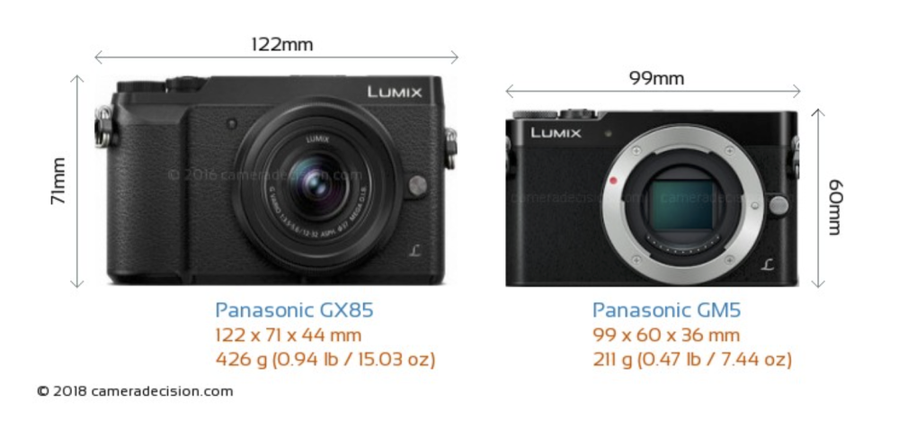 "Much larger" is subjective. It's about 15% bigger (it's hard to get a real number since sites like cameradecision which you also used measure height, for example, to the top of the EVF - and Panny Boy's VF protrudes more. And yes, it's about 50% heavier. But when that 50% is a total of like 250g, I kind of shrug. Neither one is going to break your back if you carry it around all day. I'd make that trade-off for much better (but still not great) AF. I also think of my R5 as a very compact/light body and it weighs more than either of them. Years of medium and large format photography may have warped my perception. For a long time, I was doing abandoned buildings with an RB67 which meant jumping fences with it and a heavy tripod (carbon fiber wasn't even remotely affordable yet!) in a backpack. 😅 -