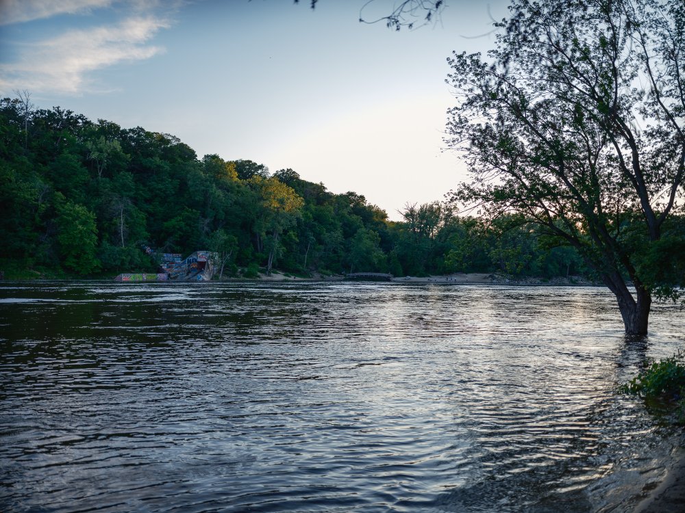 Today I stepped out to poke around a local park to look for a spot for the feature I'll be shooting soon. I took the chance to finally take out the Canon 35/1.4 and the Fujinon 500/5.6 to test them on the GFX, the latter especially because I'll be going to Namibia in a few months and will want/need something for wildlife in the distance, especially when driving around Etosha. The 35/1.4 on the GFX is totally fine, no complaints. The 500/5.6 is... astounding. I would usually say that sharpness isn't the most important thing for a lens, but with this sort of telephoto, I guess it kind of is - I'm going to care less about lens character when trying to photograph a giraffe in the distance eating the leaves from the top of a tree (I really hope I get to see a giraffe!!!) and I'm probably going to care a lot more about being able to crop in and discern the giraffe. I have a number of other fairly competent telephotos, but this one is just on another level. Here is a still photo of another park across the river with the 35/1.4. I saw a person by the storm drain and thought maybe I'd caught an urban explorer in the act... However, with the 500/5.6, I realized I couldn't have been more wrong. GF in 8k mode here and on a 4k scope timeline since that's what my scratch project is set to... And at 4x zoom in Resolve (for 1:1 from 8K): And his friend nearby, 8k and 1:1 punch in from 8K... The still photos had even a little more detail still - even though the light is imperfect, I can make out individual hairs of the hairs of the beard of the guy fishing by the drain. I also need to do a couple of tests with the Fuji 1.4x TC to push the lens out to around 700mm - it's a great TC and I barely notice any loss of detail with the 250/4 so I'm assuming that'll be true with the 500/5.6 as well. If so, I'll have some confidence that I can do alright with the wildlife of Etosha!