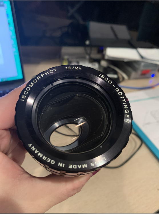 1. Hello! I have a iscomorphot 16/2x lens for sale. I do not know if anything is broken or missing. Here are some photos. I have what I assume is the original packaging. Asking for $400 OBO and Shipping cost. Will take additional photos, if requested. -Hannah
