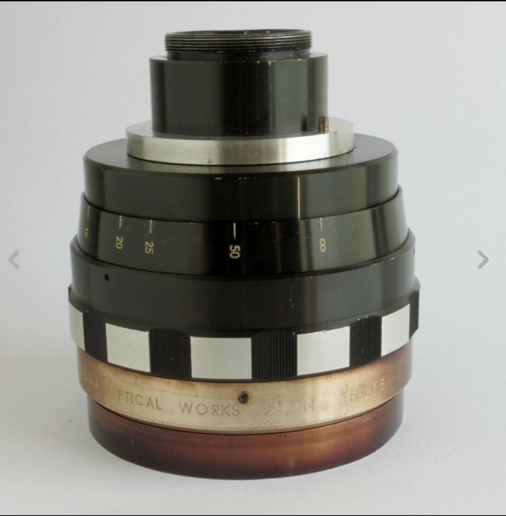 Okay, @BrooklynDan! I have some further info from the seller that might help figure some of this out. He said: "Hi there, Have shipped your lens this morning well packed for its journey! The lens came from an Eyemo-71Q Spyder turret 35mm cine camera and the lens fitted (from memory) directly into one of the turret mounts... It was a pretty top end outfit - the other lens fitted was a Nipponscope anamorphic with 50mm & 85mm Canon f1.8 back lenses and 400ft film magazines - it had seen some serious action! I received an email from a combat film camera collector when I was selling the camera and with the serial numbers on the camera he dated the camera around 1942. The Kowa would have been added much later but who knows what sights it has recorded! . The whole kit came from a deceased estate, a camera shop in Hokkaido, Japan and still had a few hundred feet of film in it... Hope this helps..." Now, his memory that it was mounted directly to an eyemo turret clearly cant be right. So, my next thought was....nipponscope? He mentioned nipponscope rear-spherical-parts, both 50 and 85. When looking at some nipponscope rear portions, one finds this little part, which seems to correspond to a part on the Kowa 35-J...sort of. the kowa doesnt seem to have the bayonet-locking portion. Any thoughts?