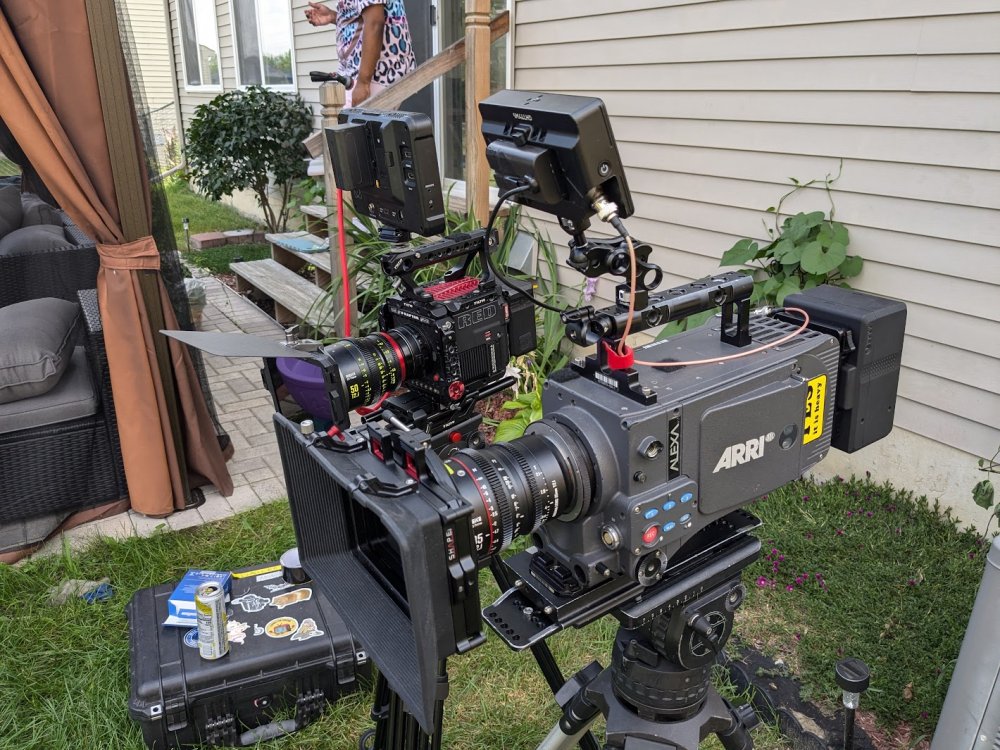 For me when you get to post and you start messing with the files you realize why larger productions opt for an Alexa/RED. We have options now like the Raptor that only weigh 4 pounds and can be powered off a small v mount battery. I would say the Raptor dynamic range is very similar to the S35 Alexas. What it delivers over them is that it holds the dynamic range in the shadows. At 800 iso the Raptor is much cleaner than an Alexa mini, but with much less highlight retention. You can boost it to 2000 iso maybe even 3200 iso and still get a nice image. The Raptor pictured below could be rigged even smaller (smaller monitor, smaller lens, no top handle). There isn't much you can do to get an Alexa smaller though. Even the mini is 8 pounds with just the body and viewfinder and is also a powerhog. The Alexa 35 is even larger. I did a feature a couple weeks ago on the Raptor. As convenient as it is to use I think we would have been better off with an FX3. The crew was so small that any convenience is a big deal. This was our rig, I traded size for battery life. All this to say I really do notice a difference shooting with Alexa/RED But after putting the files to a REC709 colorspace and adding a lot of contrast which is what I usually end up doing, the results between that and a mirrorless can definately be hard to tell if it was shot resonably well. The truth is you can sometimes shoot things better with a mirrorless. It saves you time, which then gives you more time to fine tune the things that actually matter (lighting, composition, etc...)