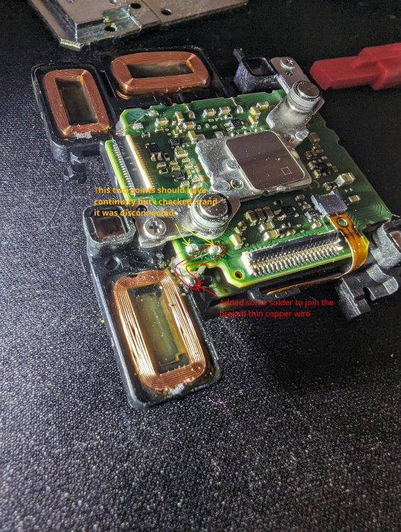 1. I had a faulty GX80 showing me a message a few seconds after power on: "Please Turn Camera Off and Then On Again". I knew it was the ibis failing because only one part of the sensor was static and the other part was very wobbly. So I dismantled my camera following this tutorial until I reached the 10th step. Once I had the ibis+sensor out of the camera, I only had to remove 3 screws and to separate the 2 flex of the sensor. Then, I realized one of the tree electromagnets had no continuity, and added some drop of tin to join the broken copper wire. And it's fixed and working again. I am so happy! I include an image of the point that was failing