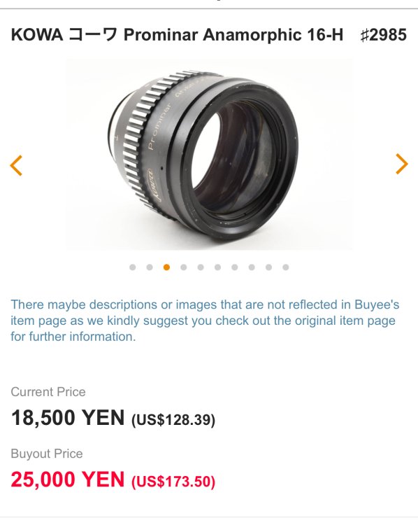 I know we’ve ventured off topic from Anamorphic adapters but I’m currently shopping for some cheap lenses with character and will use these with my Blazar Nero 1.5x so it’s somewhat relevant LOL… I stumbled upon both of these listings earlier, one from ebay US and one from Japanese Yahoo auctions. This is what I meant before when I said that there are bargains to be had for the savvy shopper.