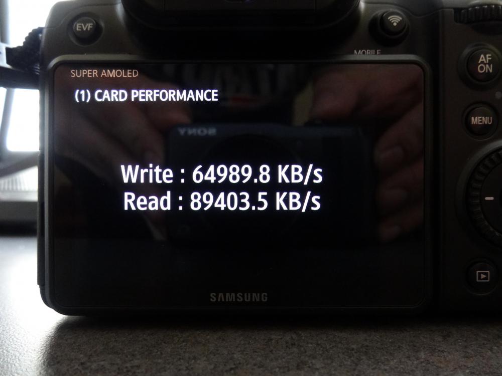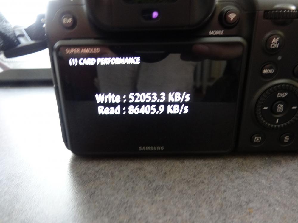 SMGJohn Posted March 24, 2016 Share Posted March 24, 2016 I tested all my cards, my Samsung model is NX1 EV-NX1ZZZBQBUS (Not sure if related) is a 2014 production model. SAMSUNG PRO MB-SGCGB SDXC 64GB UHS-I /Grade 1 /Class 10 (Read=80MB/s Write=40MB/s) Dev Test Results: Write=29077.5KB/s Read=61306.1KB/s Quote Warning: Only 61026 of 61028 MByte tested. Test finished without errors. You can now delete the test files *.h2w or verify them again. Writing speed: 39.7 MByte/s Reading speed: 72.8 MByte/s H2testw v1.4 LEXAR PROFESSIONAL 400x SDXC 128GB UHS-I /Grade 1 /Class 10 (Read=60MB/s Write=20MB/s) Dev Test Results: Write=34880KB/s Read=66230.4KB/s Quote Warning: Only 122105 of 122107 MByte tested. Test finished without errors. You can now delete the test files *.h2w or verify them again. Writing speed: 43.3 MByte/s Reading speed: 80.5 MByte/s H2testw v1.4 LEXAR PROFESSIONAL 400x SDXC 64GB UHS-I /Grade 1 /Class 10 (Read=60MB/s Write=20MB/s) Dev Test Results: Write=29183.8KB/s Read=67899.5KB/s Quote Warning: Only 61083 of 61084 MByte tested. Test finished without errors. You can now delete the test files *.h2w or verify them again. Writing speed: 38.5 MByte/s Reading speed: 82.5 MByte/s H2testw v1.4 All SDXC cards where formated to ExFat standard, no freezing of crashing after Dev test. Cards also tested with H2testw to detect true read and write speed. lucabutera 1 Link to comment Share on other sites More sharing options...