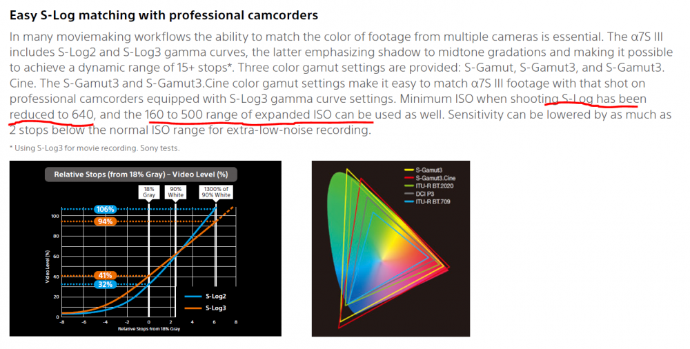 Hangs4Fun Posted September 3, 2020 Share Posted September 3, 2020 6 hours ago, Trek of Joy said: The a7III also has just contrast, saturation and sharpness like every other Sony camera. Interesting there are so many more options to tweak the standard profiles now. I've been using Cine2 (over the seemingly more popular HLG) with the a7III to avoid Slog headaches and have a lower minimum ISO since I always shoot in the sun, its unavoidable in Florida LOL! Will be interesting to see how Cine2 and HLG translates to 10-bit 4:2:2 footage. Chris In the a7SIII you can take the S-Log3 all the way down to 160 ISO 😮 though the minimum ISO when shooting S-Log3/S-Log2 is now native 640 but in extended can go from 160-500 So looking forward to no more minimum of 1,600 ISO. You should seriously consider shooting the A7SIII in S-Log3. Between this new min ISO and finally having the color range to support it, S-Log3 will finally be usable in a mirrorless. LightShooter 1 Link to comment Share on other sites More sharing options...