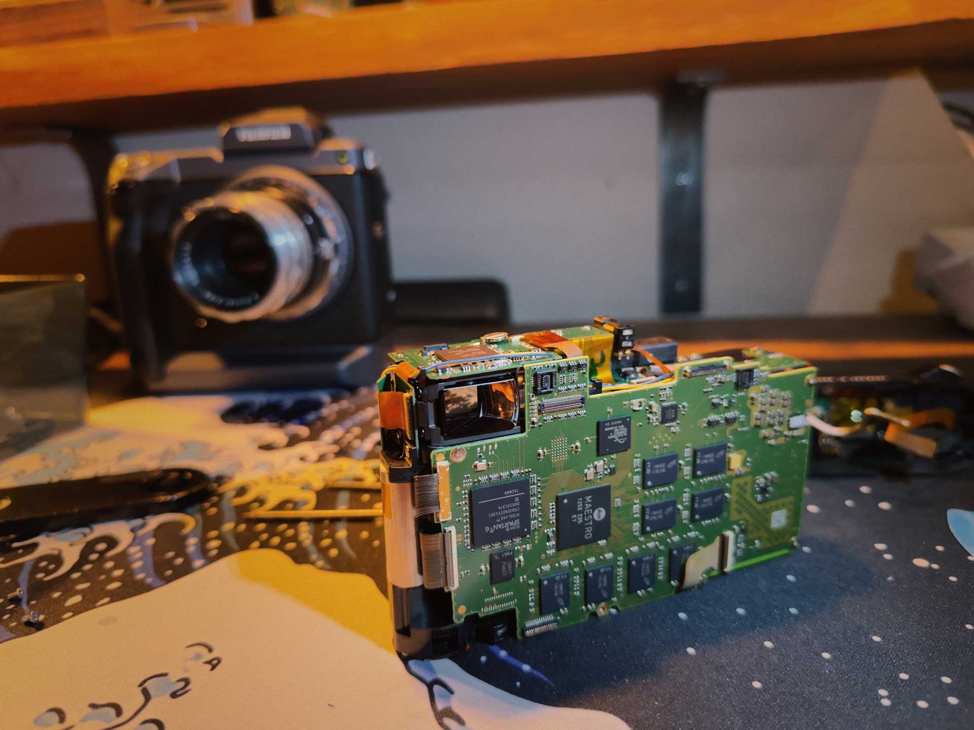 Before prying the back casing off, I wanted to see if I could eliminate the mechanical shutter as a source of the problem. The shutter is a key component of the camera, it takes a lot of stress and has to be checked at boot by the system architecture, if it detects an unexpected reply – then like with a faulty sensor – the camera will problem crash or throw an error.